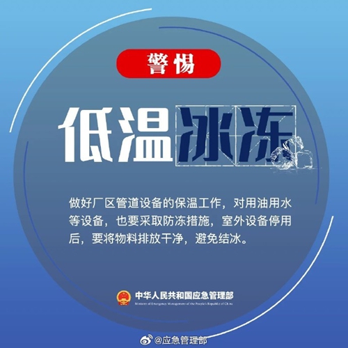 冬季寒冷、干燥容易發生凍傷、中毒、滑跌等人身傷害事故,給企業安全生產帶來了一定影響。如何避免事故發生?一起來學習↓↓ ???