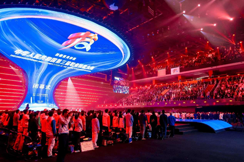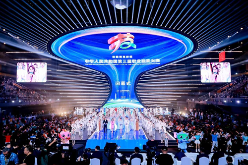 華燈璀璨,掌聲如潮。9月23日晚,當(dāng)348名獲獎(jiǎng)選手高舉隊(duì)旗與獎(jiǎng)?wù)拢?dāng)大賽會(huì)旗在璀璨的舞臺(tái)上完成交接傳遞,當(dāng)良渚文化和人形機(jī)器人在現(xiàn)場(chǎng)8000余名觀眾的歡呼聲中共舞……中華人民共和國第三屆職業(yè)技能大賽閉幕式在鄭州奧體中心體育館完美落幕!