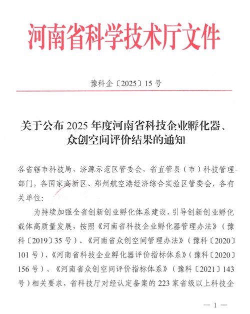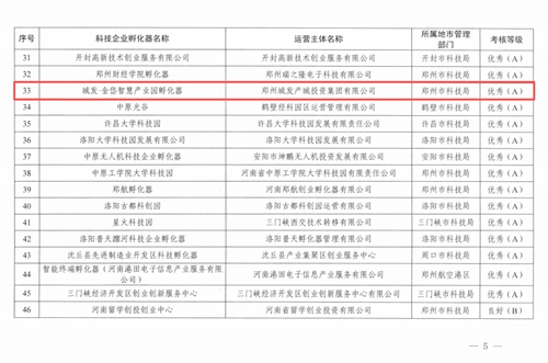 近日,河南省科學技術廳正式發布《關于公布2025年度河南省科技企業孵化器眾創空間評價結果的通知》(豫科企〔2025〕15號),鄭州城發集團金岱智慧產業園憑借扎實的孵化服務能力、突出的創新培育成效,在全省223家省級以上科技企業孵化器的嚴格考評中脫穎而出,榮獲最高考核等級——“優秀(A類)”!